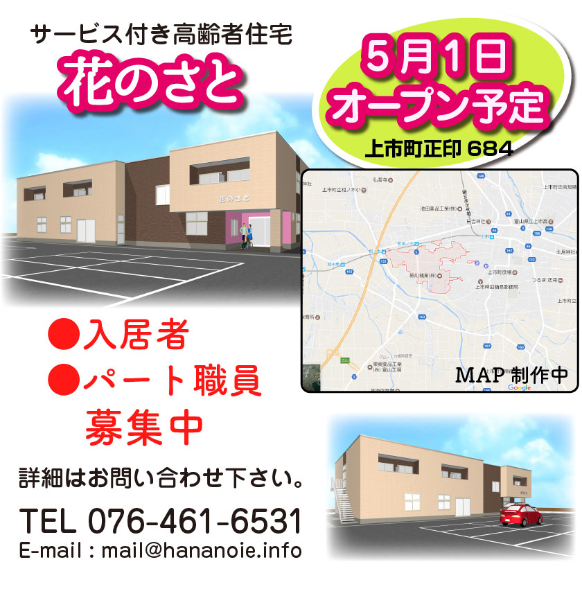 サービス付き高齢者住宅「花のさと」、5月1日オープン予定。